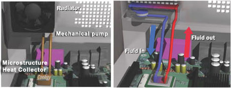 solution to both challenges. The Cooligy system employs a fluid pumped